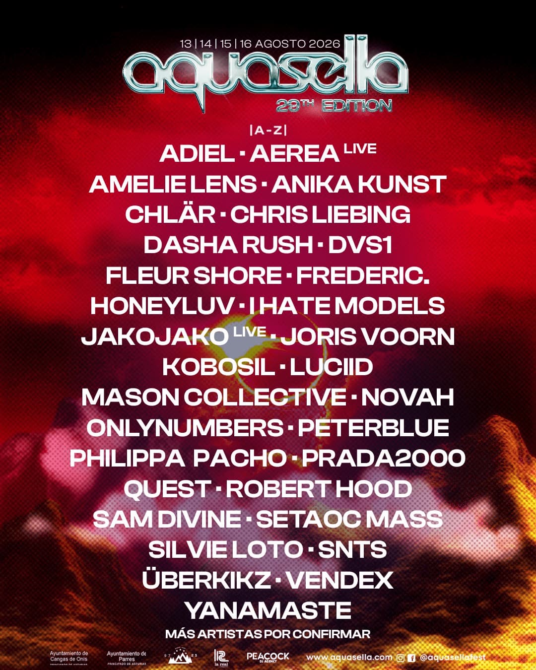 El Aquasella Festival celebrará su 29ª edición del 13 al 16 de agosto de 2026 en el emblemático Valle de la Música, entre Arriondas y Cangas de Onís, en Asturias. Este festival se ha consolidado como uno de los referentes europeos en música electrónica, especialmente en el género techno.