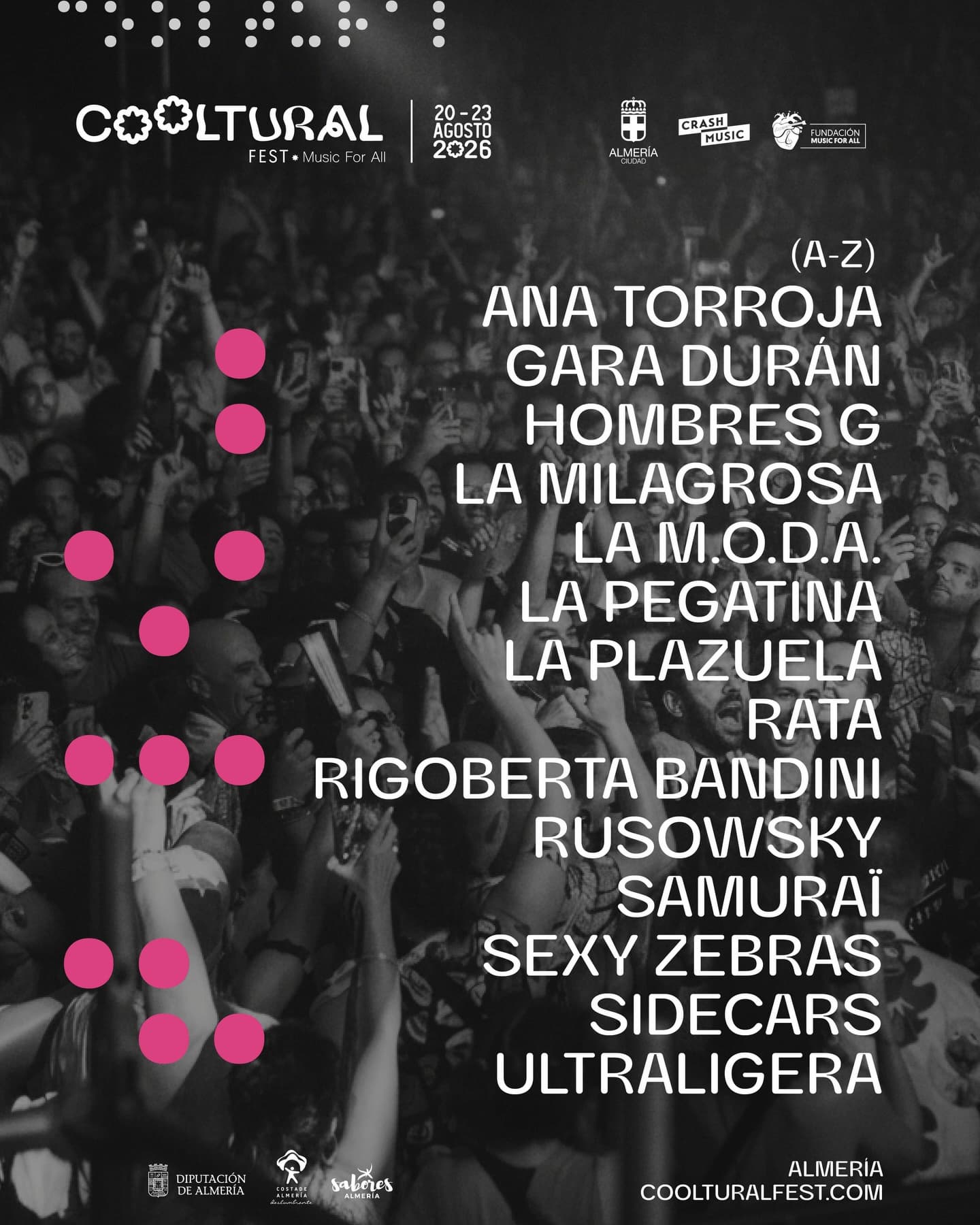 El Cooltural Fest 2026 se celebrará en agosto en el Recinto Ferial de Almería, consolidándose como uno de los festivales más destacados del verano en la ciudad. En esta octava edición, el festival contará con una destacada programación que incluye a artistas nacionales e internacionales de renombre.
