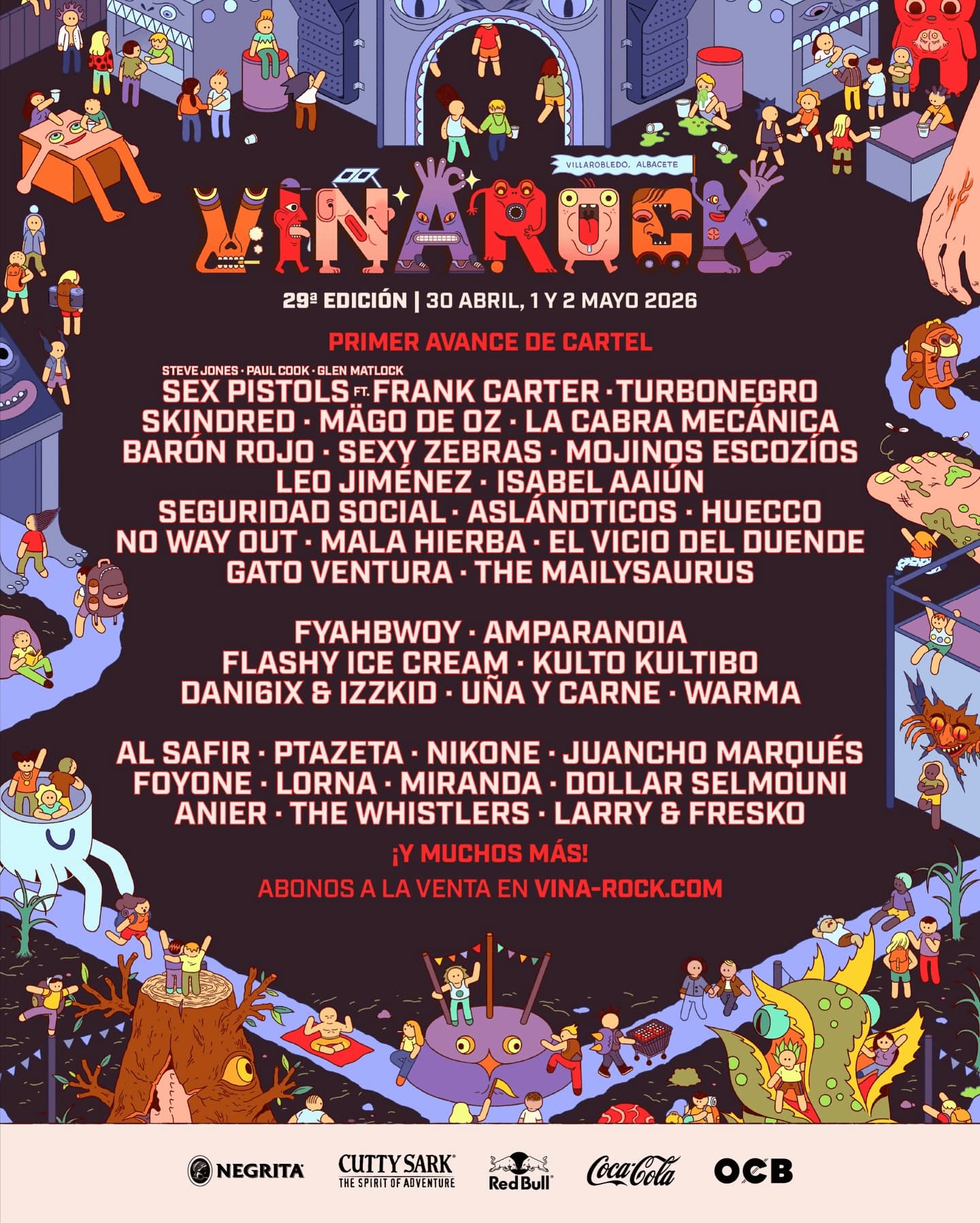 Sex Pistols Ft. Frank Carter, Turbonegro, Skindred, Mägo de Oz, La Cabra Mecánica, Barón Rojo, Sexy Zebras, Mojinos Escozíos, Leo Jiménez, Seguridad Social, Isabel Aaiún, Fyahbwoy, Lorna ¡y muchos más!